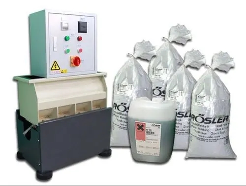 通過將產(chǎn)品放進彩色石子和藥水混合的特殊液體中,進行振動磨擦,測試產(chǎn)品的耐磨擦性能.